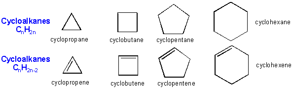 Hydrocarbons can also contain carbon chains which connect to each other to form a ring structure, called cycloalkanes or cycloalkenes.